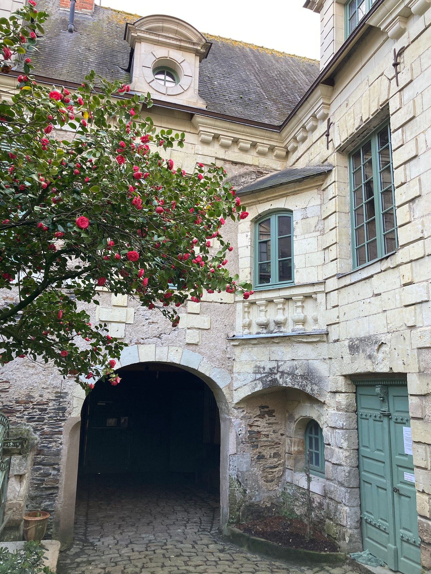 My body feels calm in Angers. The centre ville is old and walkable, even if I can’t walk as far as I’d like. There’s a patisserie around the corner from my lodging, and a grocery store just beyond that. A 10-minute walk in the direction of the river will land me on the doorstep of the anglophone library.